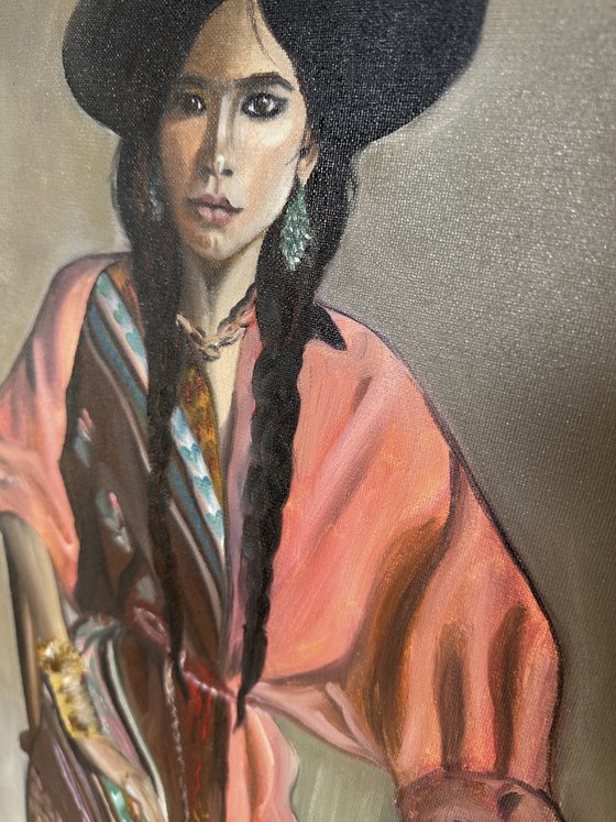 Style: contemporary portraiture with folk elements