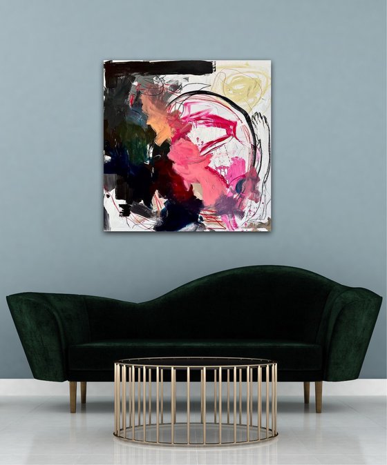 This original artwork will make a bold statement in any contemporary interior, offering a visual dialogue that continues to unfold over time.