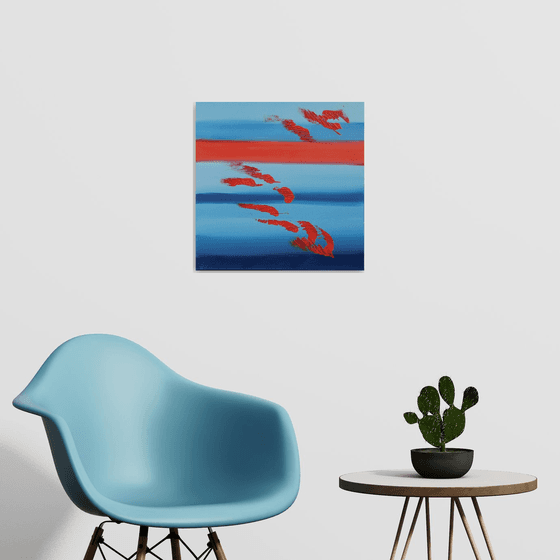 The canvas is stretched on a wooden frame deep edge cm 4, with hook on the back. The edges are painted and artwork is ready to hang.