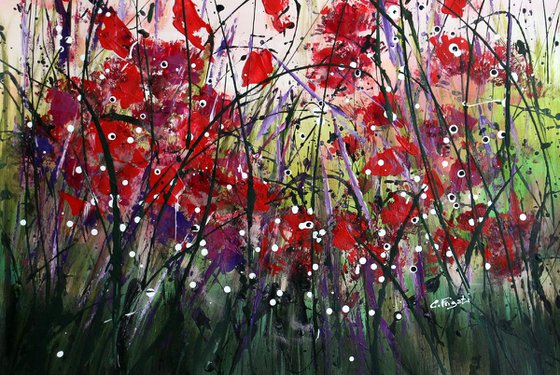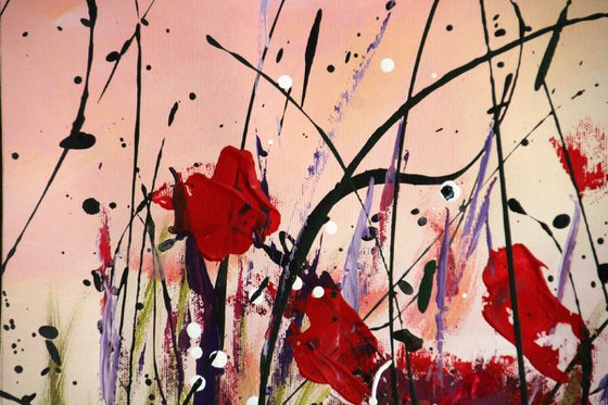 "Red Passion" is an atmospheric / thought provoking abstract acrylic floral landscape on unstretched canvas.