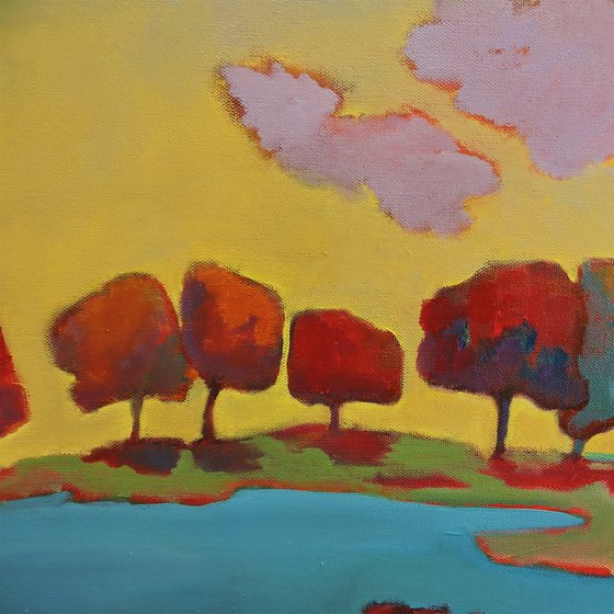 Original painting, impressionism, landscape painting, oil on canvas, semi-abstract, sky, land, clouds, the fall