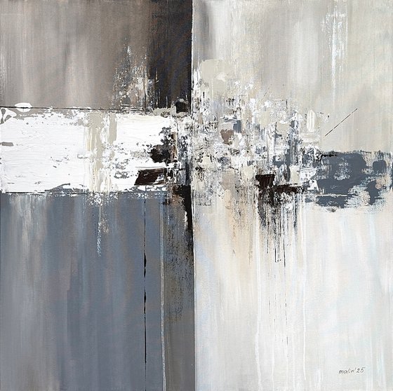 "Rhythms, beauty of simplicity and balance" is an original acrylic painting from the Structural Flow series, created on canvas measuring 85 x 85 cm. This piece was born in a moment of internal stillness — that rare state when everything quiets down and a sense of effortless movement takes over, untouched by urgency or worry. I painted it in the morning light, when shadows are still soft and the day is just beginning to take shape. It was in that calm that I felt inspired to capture the delicate balance between stillness and motion.