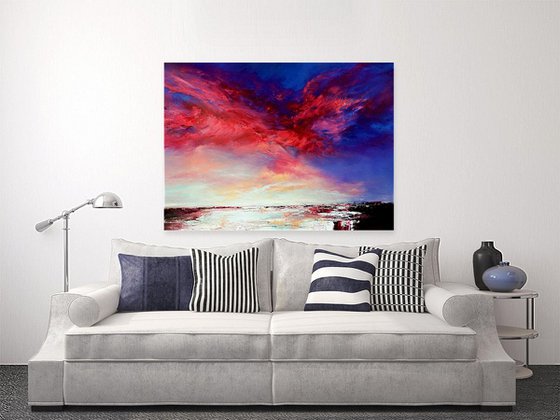 " Ruby Sunset" pink, gold, blue abstract seascape