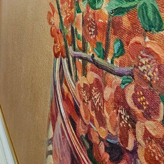 The still life celebrates both the fleeting beauty of spring blooms and the timeless appeal of geometric design, offering a sophisticated visual conversation between nature and abstraction.