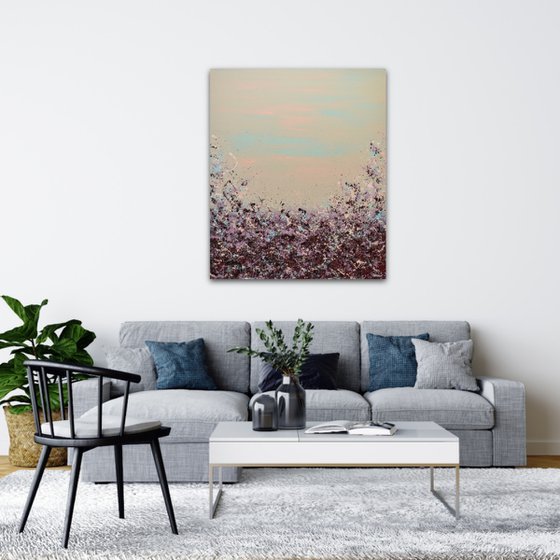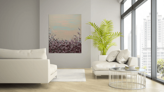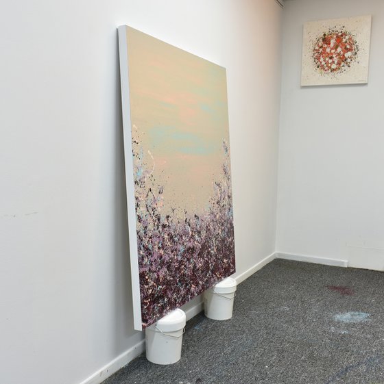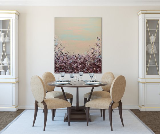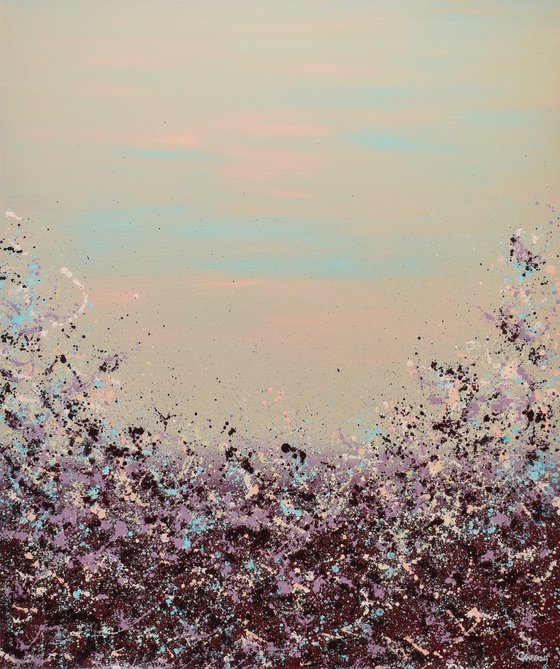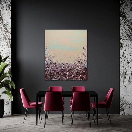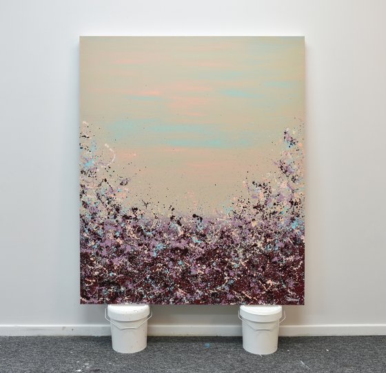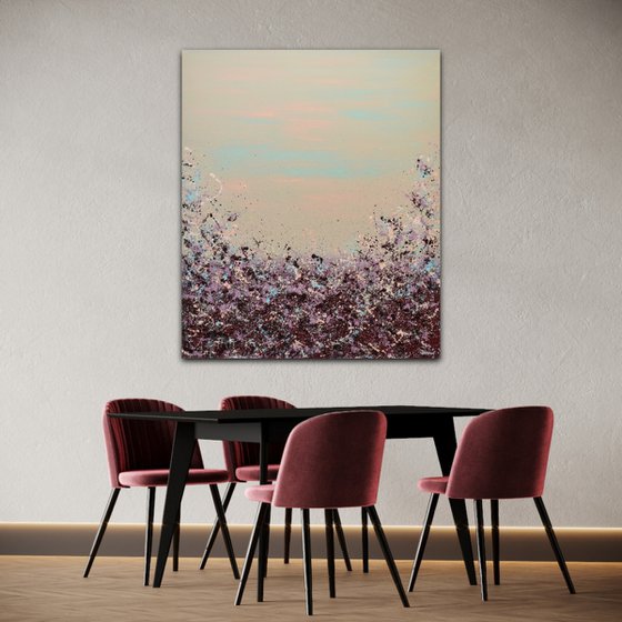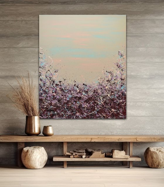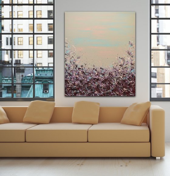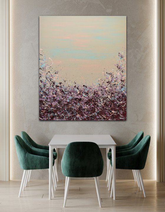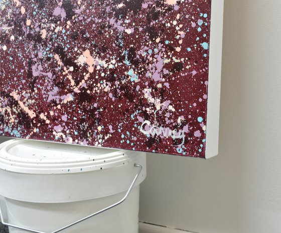 Looking to add a burst of color to your walls? Meet Lisa Carney's Sangria Splash art. This large, chic abstract painting (at 48x40 inches) is a classy and elegant addition that's sure to be a conversation starter. Don't wait - bring this vibrant piece to your home.