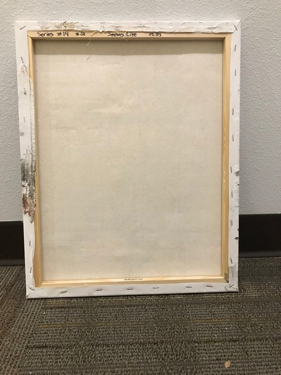 My Series #14 invoke memories of parts of my life and I am in the process of trying to find a sense of balance between my past and present, what I have done, what I have not done and making all these moments fit somehow with the shapes and movements and neutrality of the colors. I consider this to be a very honest exploratory work that I am doing about who I once was prior to my accident. Since past pieces hold a memory of where I was when I created it and by using a cut up section of the past painting I paste it, collage it onto a new painting with the purpose of trying to find some peaceful cohesion in the present from my disjointed past that occurred since my accident that caused my Brain Injury Disability. This can create many complicated layers that have taken years to come together in this manner, in this cohesive manner. But it comes out a beautiful, often chaotic looking mess, one that I love and that draws people in as if it speaks to a part of them as well!
