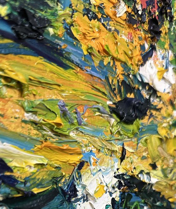 For this painting, I was inspired by the artistic techniques of European masters such as Paul Cézanne, Vincent van Gogh, Claude Monet, Georges-Pierre Seurat, Édouard Manet, and Paul Gauguin. Impressionism holds a special place in my heart and serves as a constant source of inspiration. In my work, I often experiment and create paintings in the style of Pointillism.