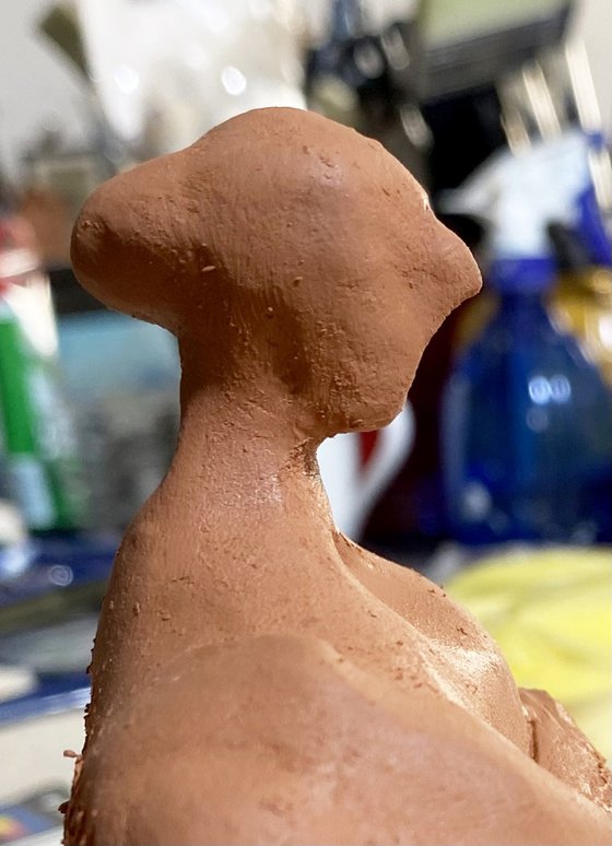 This clay sculpture represents the essence of inner stillness. This bust, with its fluid silhouette and abstract face, evokes a feeling of peace and deep reflection. The unworked surfaces and finger marks create a dialogue between the raw material and the artistic intent, inviting the viewer to contemplate the duality between nature and human creation. This work will bring a calming and meditative presence to your home, stimulating a personal connection with art.