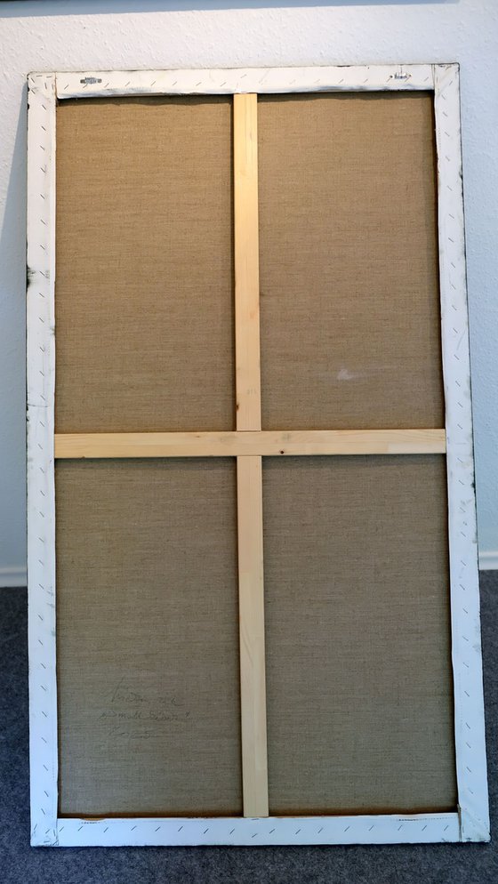 The impressionist painting shows a tranquil winter landscape not far from the artist's home. A narrow, almost motionless river flows through the centre of the picture, running like a silent ribbon through the snow-covered landscape. Tall, bare trees line the banks to the left and right - their delicate branches reach up into the grey-blue winter sky and are gently reflected in the mirror-smooth water. The scene is bathed in a soft, diffuse light. The low winter sun breaks through the pale haze and bathes the snow cover in a soft, luminous white. Long shadows cast by the trees cover the snow and give the landscape depth and structure. On the near horizon, which is lightly dipped in mist, you can make out a shady copse - a silent boundary between the course of the river and the wider landscape. The colour palette is restrained: cool blue tones, off-white and soft earth tones dominate the picture and create a melancholy, peaceful atmosphere.