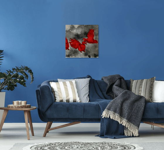Materials: oil, canvas, satin lacquer (makes the picture brighter, moderate gloss), wooden stretcher.