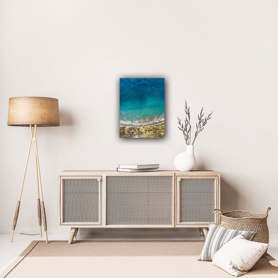 Inspired by satellite and aerial views of the Bahamas and Turks and Caicos, this one-of-a-kind, hand-painted piece is part of a deeply personal journey. As someone living with depression, PTSD, and anxiety, painting is my form of therapy—a way to process emotion, find stillness, and reconnect with joy.