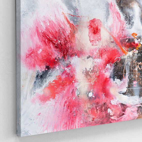 This painting bursts with vibrant colors and intricate textures, a one-of-a-kind artwork created with premium mixed media materials on 380gsm acid-free cotton canvas. Stretched over a wooden frame, it’s coated with glossy resin for UV and dust protection.
