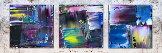 - Save As A Series - Original PMS Abstract Acrylic Painting Triptych On Wooden Panels - 72" x 24"