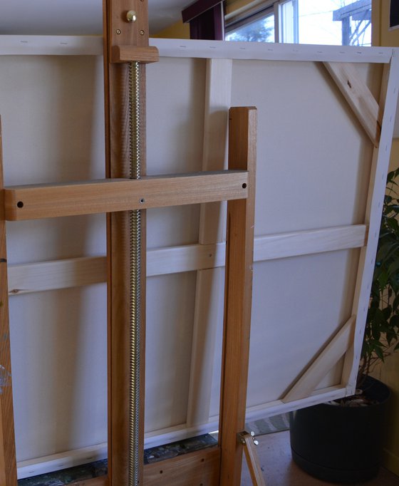 - Two coats of protective gloss varnish are applied to protect the painting from UV rays and dust.