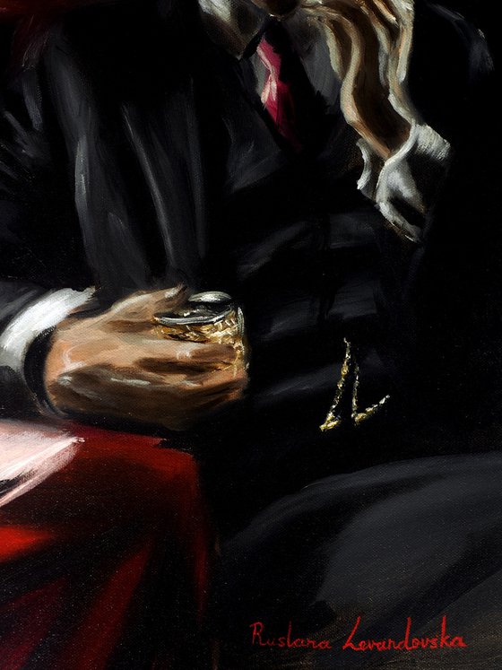 With its moody palette and dramatic interplay of light and shadow, this piece captures a suspended moment—elegant, enigmatic, and rich with unspoken narrative.