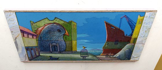 Integrated frame, handmade, handpainted by me: Acrylics, wood, XPS board.