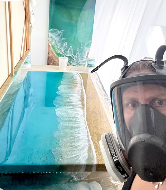 tinted resin, mixed media, pigments, acrylic paint, spray paint