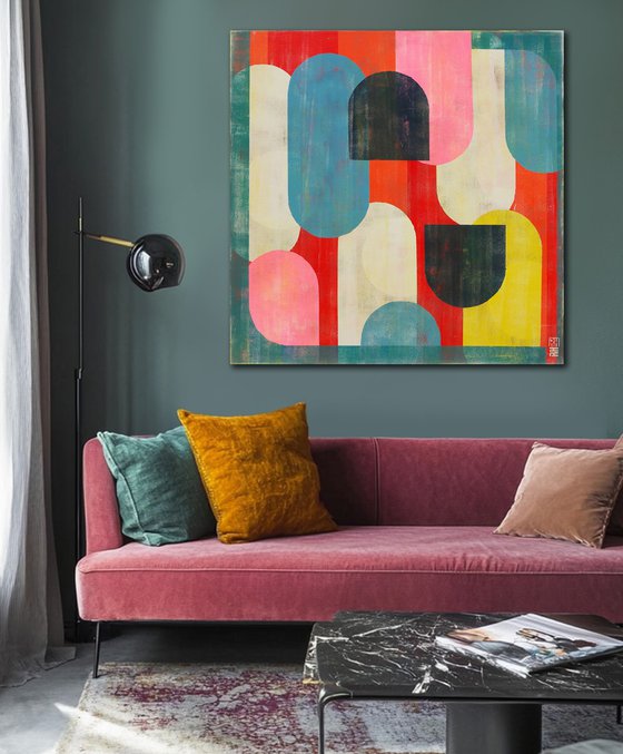 Ronald has created a series, “Traffic”, with beautiful shapes and multiple layers of acrylic paint. This vintage style painting ensures peace in the room and also fits easily into your interior style.