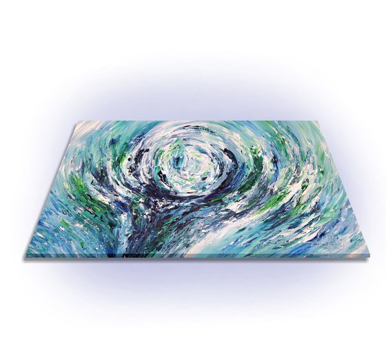It was painted with professional acrylic paint on canvas. Stretched on a wooden frame. The sides are painted, so the painting is ready to hang. You get a certification of authenticity.