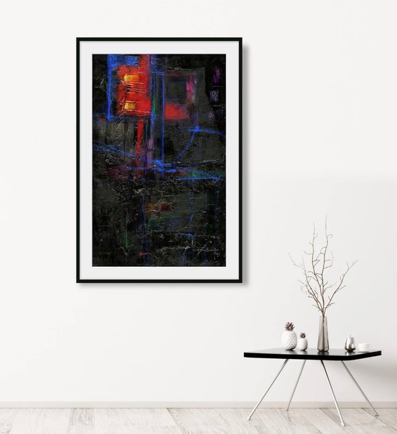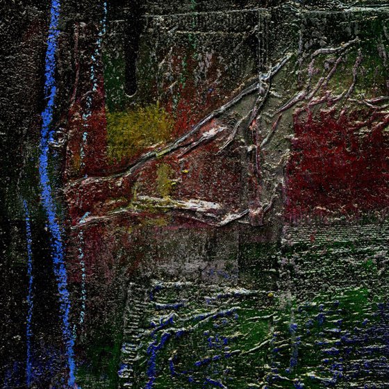• Materials•• Mixed media Sealed with a high gloss varnish, no glass required. Very Textured.
