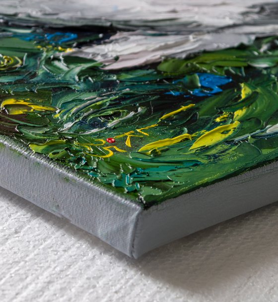 "Vincent van Dog" is a playful and expressive tribute to the spirit of post-impressionism and our four-legged friends. Painted in bold, swirling brushstrokes reminiscent of Van Gogh's "Starry Night", this whimsical work depicts an adorable bull terrier surrounded by vibrant greenery and twinkling stars.