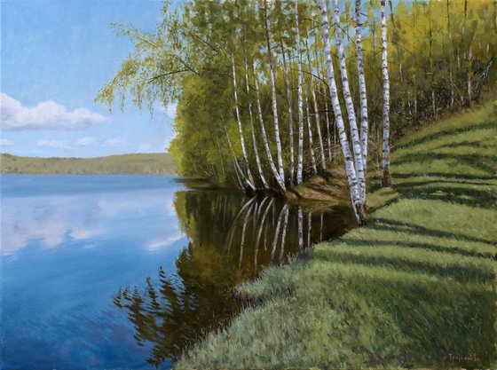Cold water, grassy shores, birches and fresh air, that's why you come to Vlasina Lake. And because of the sense of duration and timelessness that constantly brings you back to this place. I hope that I have transferred part of that experience to this painting. Original artwork painted using high quality oil colors. Canvas is stretched on wooden bars, ready to hang or framing.