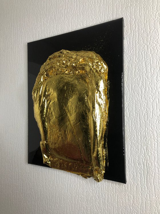 Crafted with special modeling paste and finished with a flawless layer of epoxy resin over genuine gold leaf, the piece dynamically interacts with its environment. Its reflective surface shifts and changes with the light and the viewer's perspective, ensuring it is a living, evolving element in your interior.