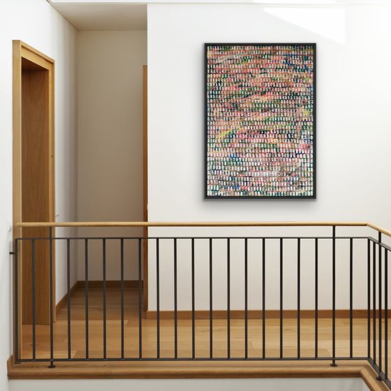 'Walking in the Sundown' is intuitively created over multiple layers of acrylic paint which is spontaneous and gestural. The abstract artwork is based on exploration of the visual elements, memories and impressions of nature.