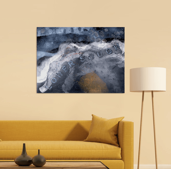 Large painting on stretched paper bonded to canvas responding to the habitat of the watersheds of the Pennines. Geographical features, map markings, personal gesture and place names come together in these large scale black and white drawings and encaustic works. Maps contain a wealth of insight into our attitude towards the land, and this is noted through the use of names in the drawings – each place name denotes a term for a marshy water-collecting environment reminding us of the supreme importance of preserving and encouraging these habitats, not only for their own sake, but for the important carbon storing capacity of these upland wet areas, and for their ability to slow and tame flood water.