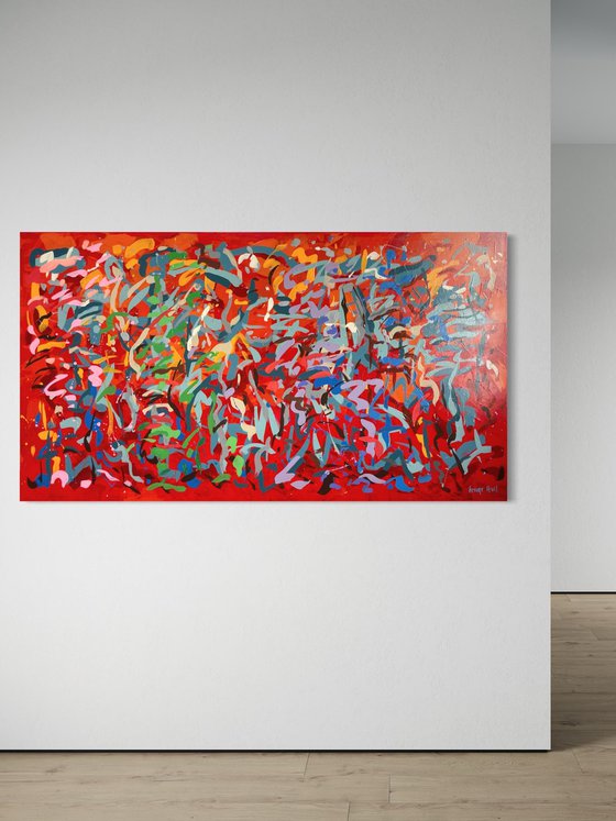 Every colour in this painting stands for something - not just difference, but connection. These layers cross over each other, push through, sit beside one another. Just like we do. It’s all in there - strength, softness, certainty, doubt. The whole mix.